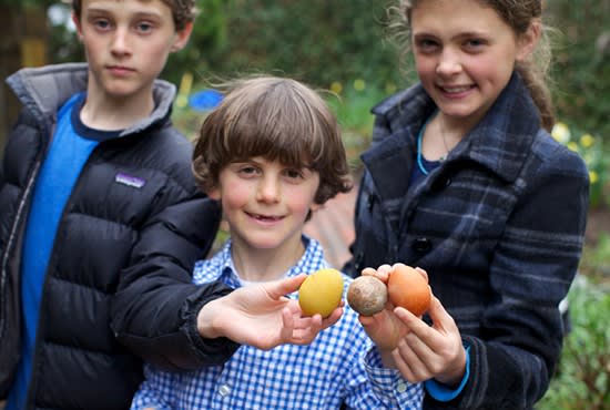 “We dye our eggs with natural dyes and have developed a few interesting techniques over the years,” said Musnicki. “They not only take on nice natural tones and subtle textures. They also blend in really well with nature.” So, the egg hunts end up being challenging for all ages.
